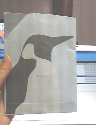 ペンギンのお腹に「おだいじに」と書かれています。
