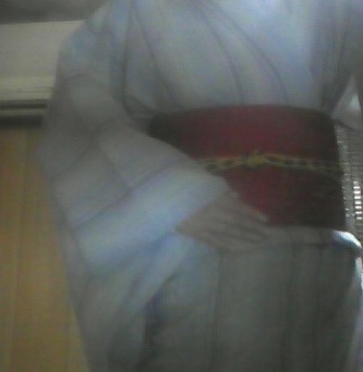 実を言うと着物ではなく浴衣なのですが…でも縞柄だから、長襦袢着ちゃえばわかんないだろうと(つか、この浴衣、長襦袢ない方がおかしい気がする…)。